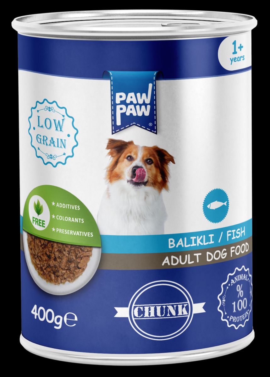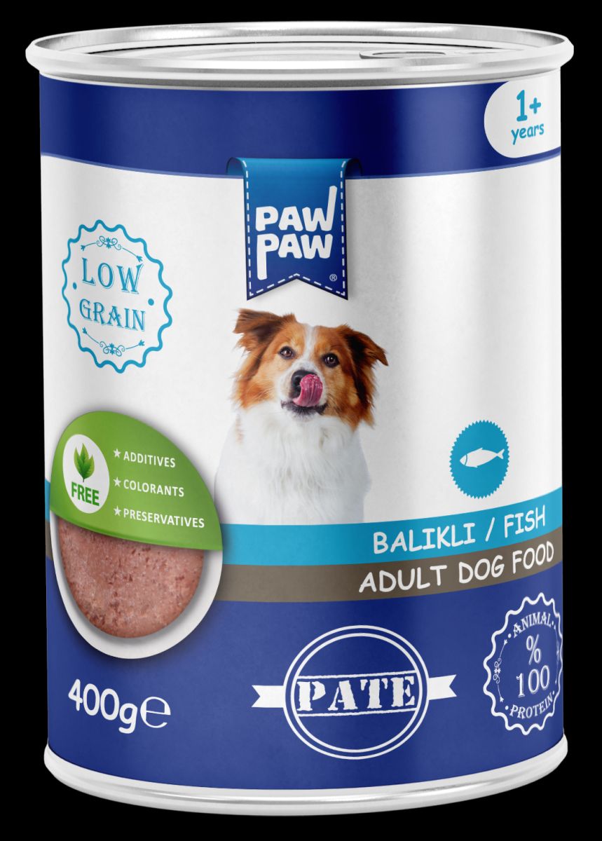 Hrană umedă pentru câine adult, PawPaw, pate de pește, 400 g, mâncare câine gustoasă, digestie ușoară, hidratare optimă, fără coloranți și consevanți Engros