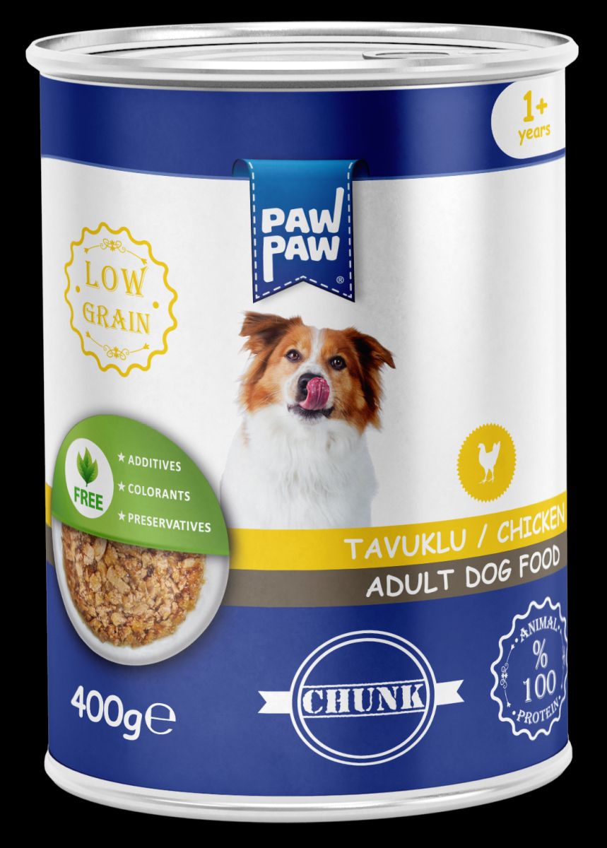 Hrană umedă pentru câine adult, PAWPAW, bucăți de pui în sos, 400 g, conținut scăzut de cereale, gust delicios, digestie ușoară și sănătate zilnică Engros