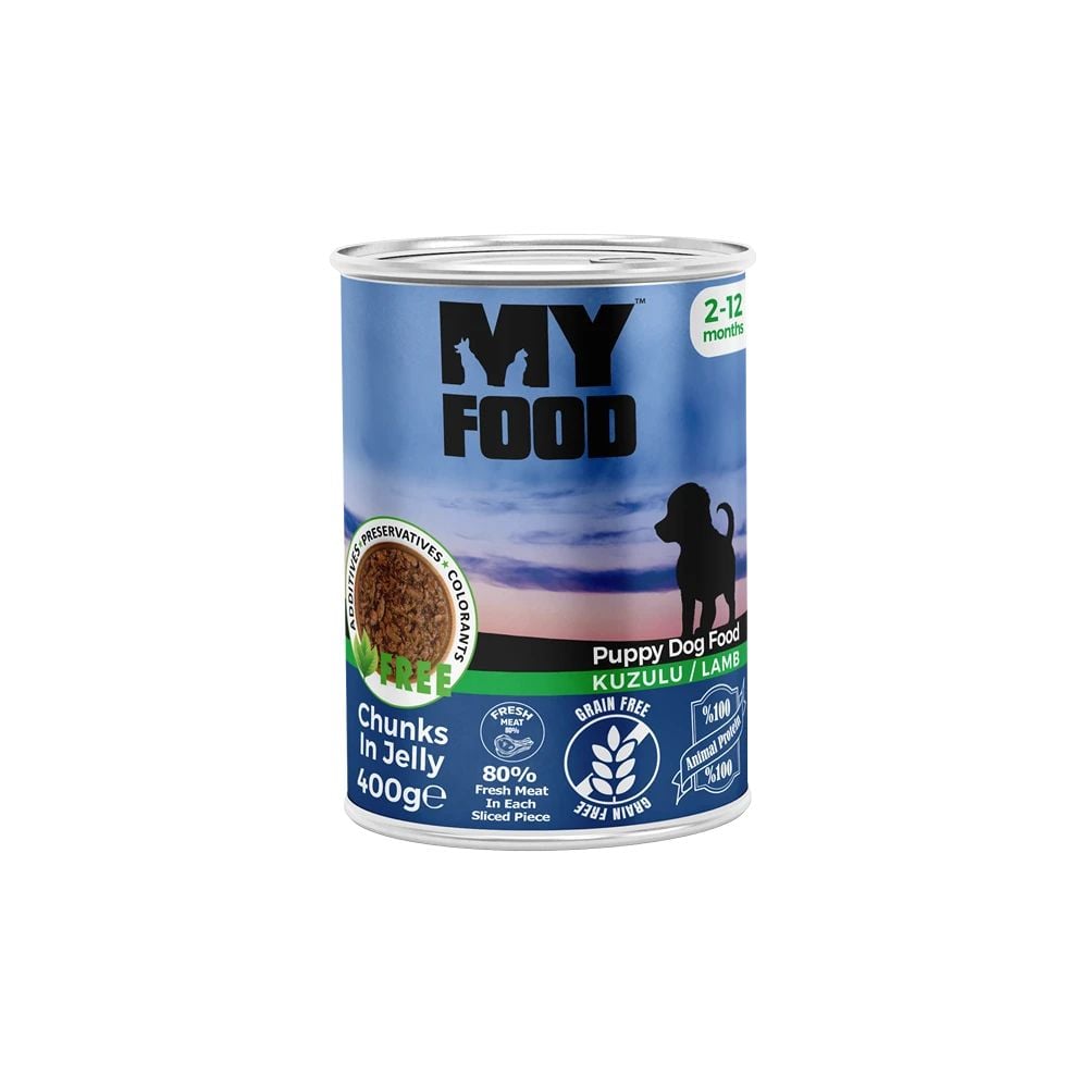 Hrană umedă pentru câine junior, MyFood, cu bucăți de miel în sos, 400 g, super premium, creștere sănătoasă, oase puternice, digestie ușoară Engros