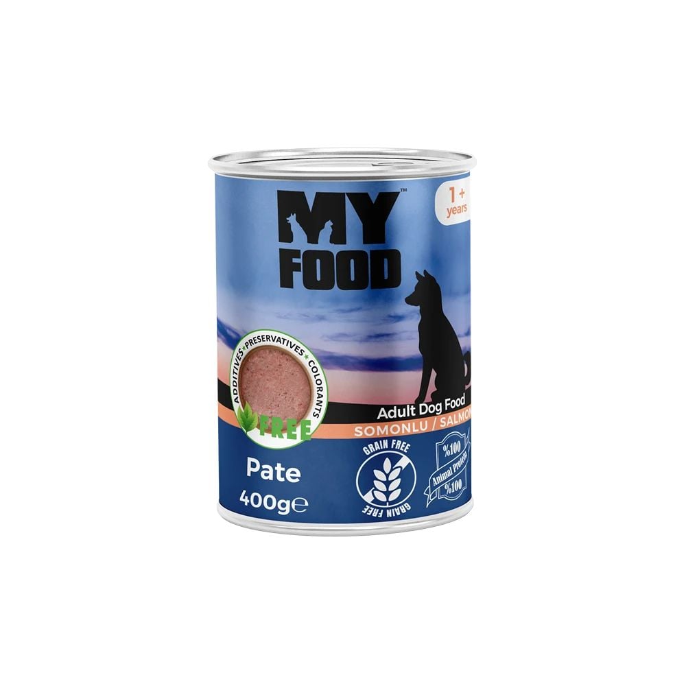 Hrană umedă pentru câine adult, MyFood, pate cu carne de somon, 400 g, super premium, piele sănătoasă, blană strălucitoare, imunitate puternică Engros