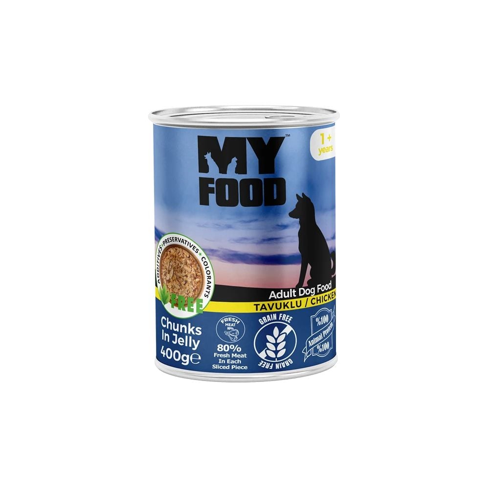 Hrană umedă pentru câine adult, MyFood, cu bucăți de pui în sos, 400 g, super premium, digestie ușoară, masă musculară, gust delicios Engros