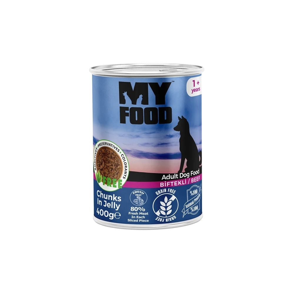 Hrană umedă pentru câine adult, MyFood, cu bucăți de vită în sos, 400 g, super premium, masă musculară, energie zilnică, gust delicios Engros