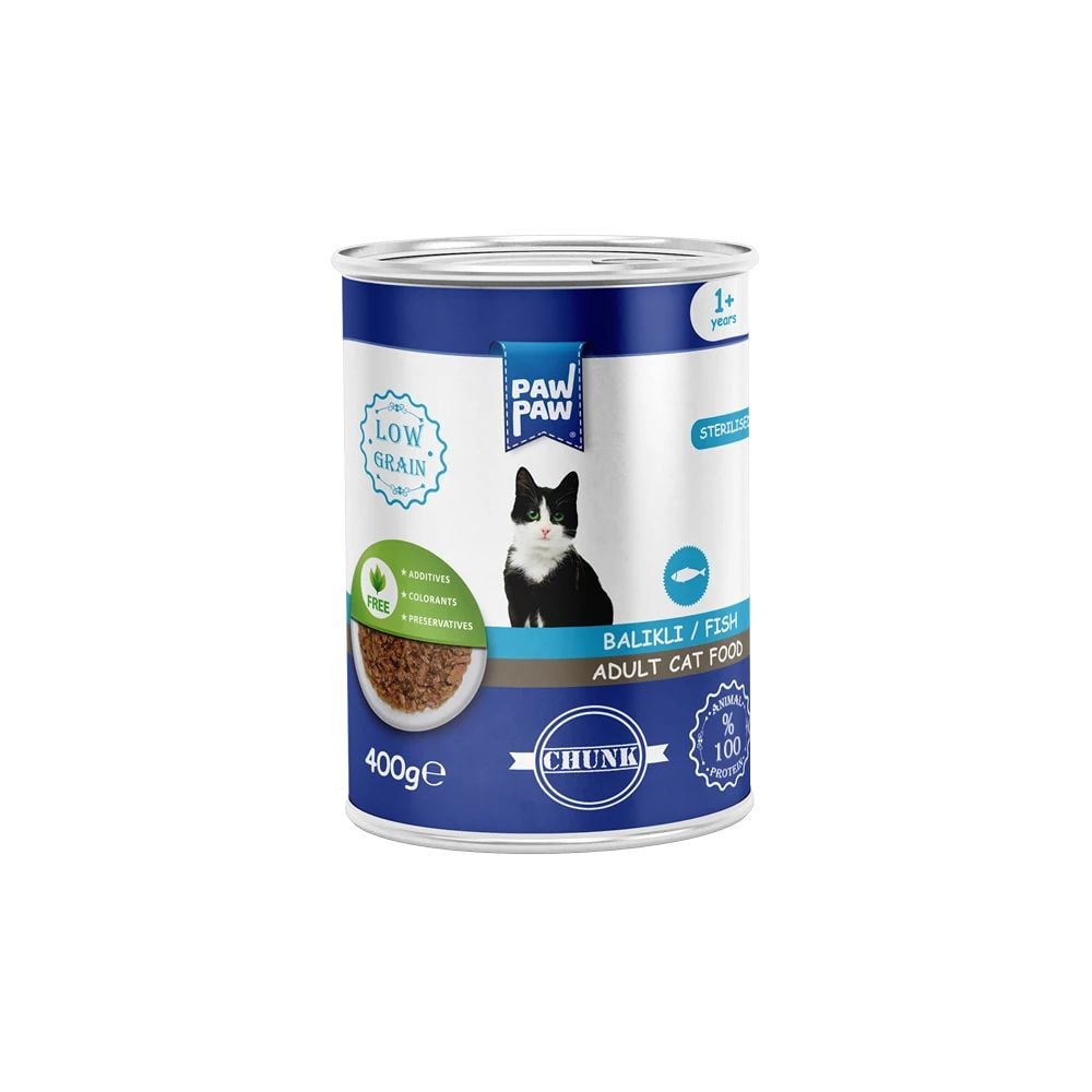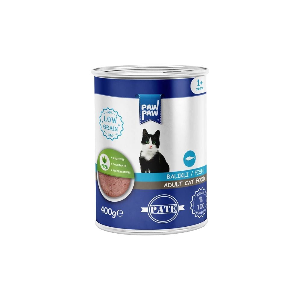 Hrană umedă pisici adult, PawPaw, cu pate de pește, 400 g, gust savuros, digestie ușoară, blană strălucitoare Engros