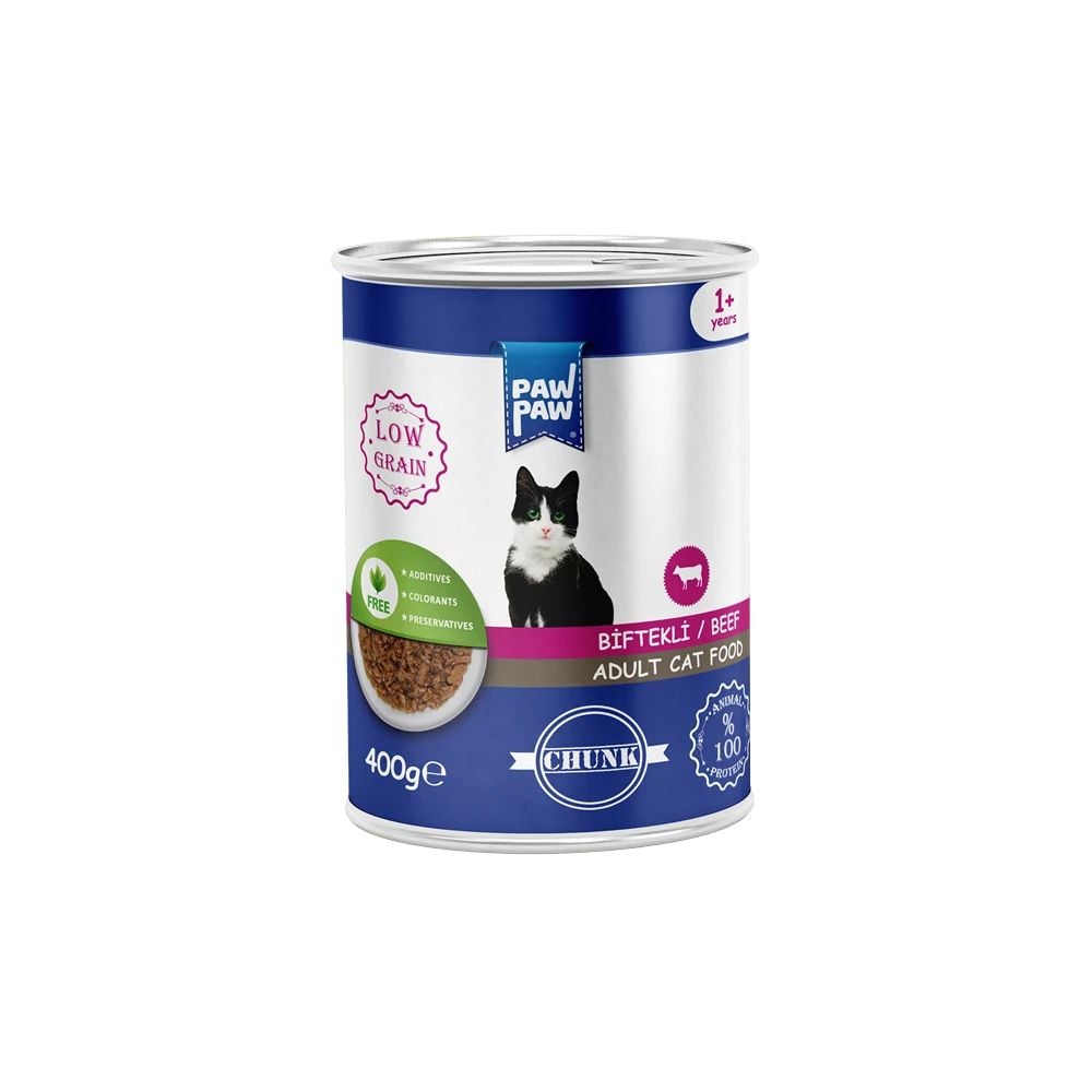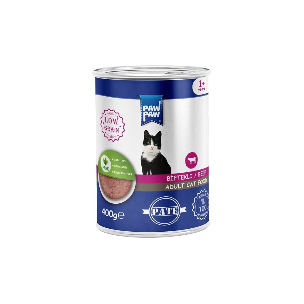 Hrană umedă pisici adult, PawPaw, pate cu vită, 400 g, gust intens, proteine animale, energie zilnică Engros