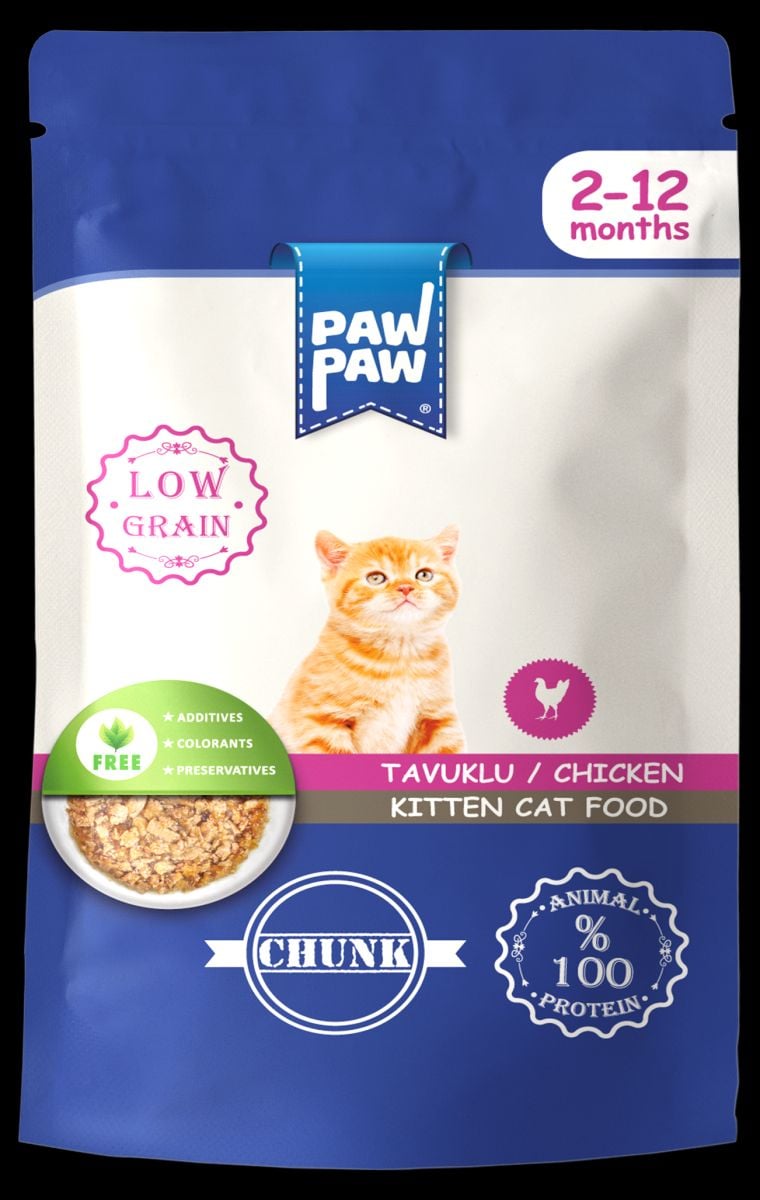 Hrană umedă pisici junior, PawPaw, cu bucăți de pui în sos, creștere sănătoasă, digestie ușoară, energie pentru joacă - 85 g Engros