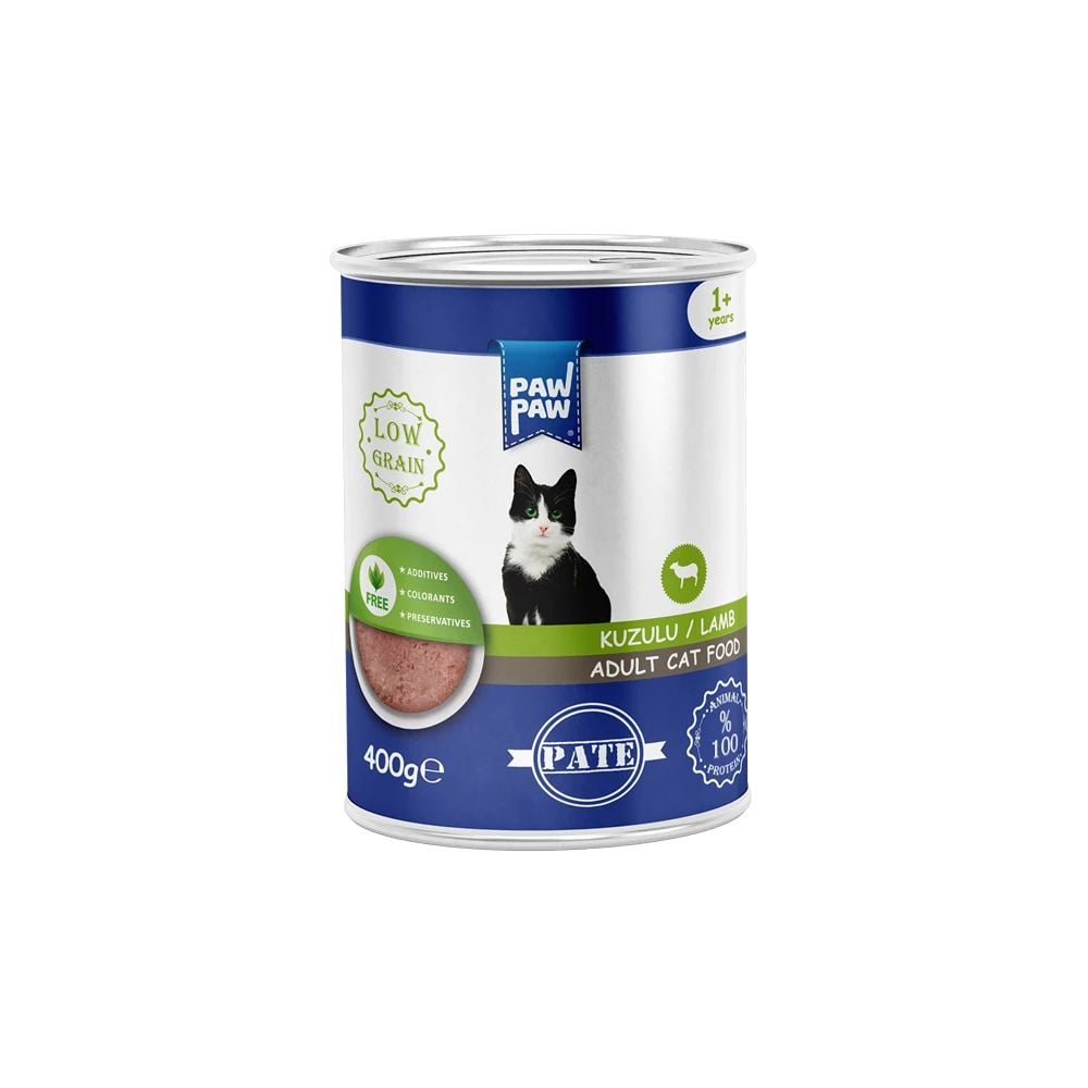 Hrană umedă pisici adult, PawPaw, cu pate de miel, 400 g, gust delicat, digestie ușoară, nutriție echilibrată Engros
