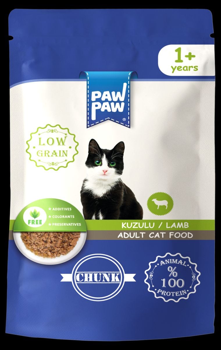 Hrană umedă pentru pisici adulte, PawPaw, bucăți de miel în sos, gust delicios, sănătate zilnică, hrană echilibrată - 85 g Engros