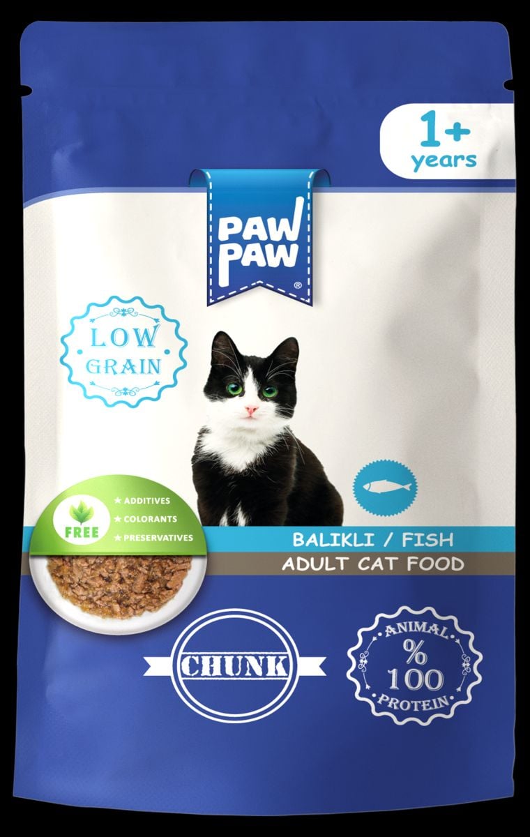Hrană umedă pentru pisici adulte, PawPaw, bucăți de pește în sos, gust delicios, hidratare optimă, sănătate zilnică - 400 g Engros