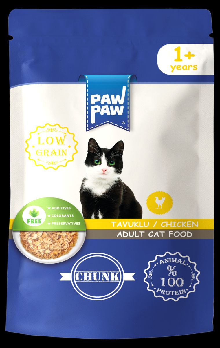 Hrană umedă pentru pisici adulte, PawPaw, bucăți de pui în sos, proteină de calitate, susținere imunitară, sănătate optimă - 85 g Engros