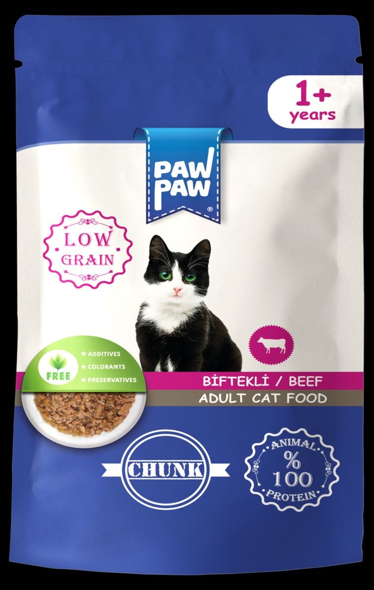 Hrană umedă pentru pisică adult, PawPaw, cu bucăți de vită în sos, gust intens de carne, textură suculentă, vitalitate zilnică - 85 g Engros