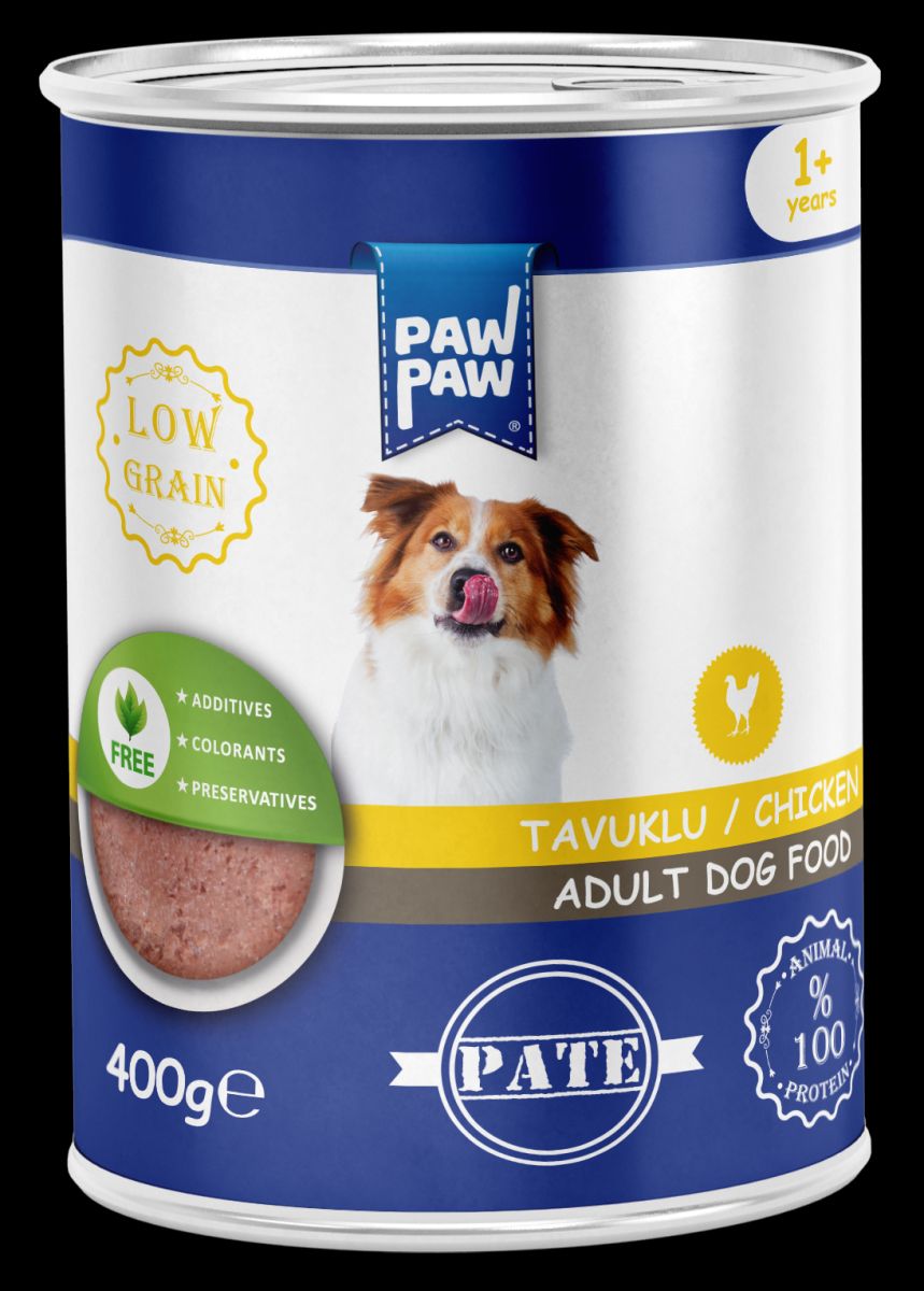 Hrana umedă pentru câine adult, PawPaw, pate de pui, 400 g, gust delicat, textură fină, digestie ușoară Engros