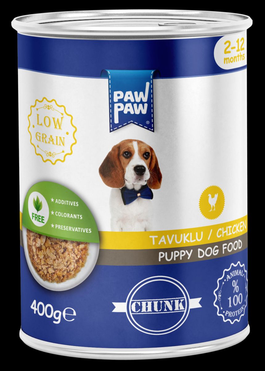 Hrană umedă pentru câine junior, PawPaw, bucăți de pui în sos, 400 g , proteină animală 100%, digestie ușoară, creștere sănătoasă Engros