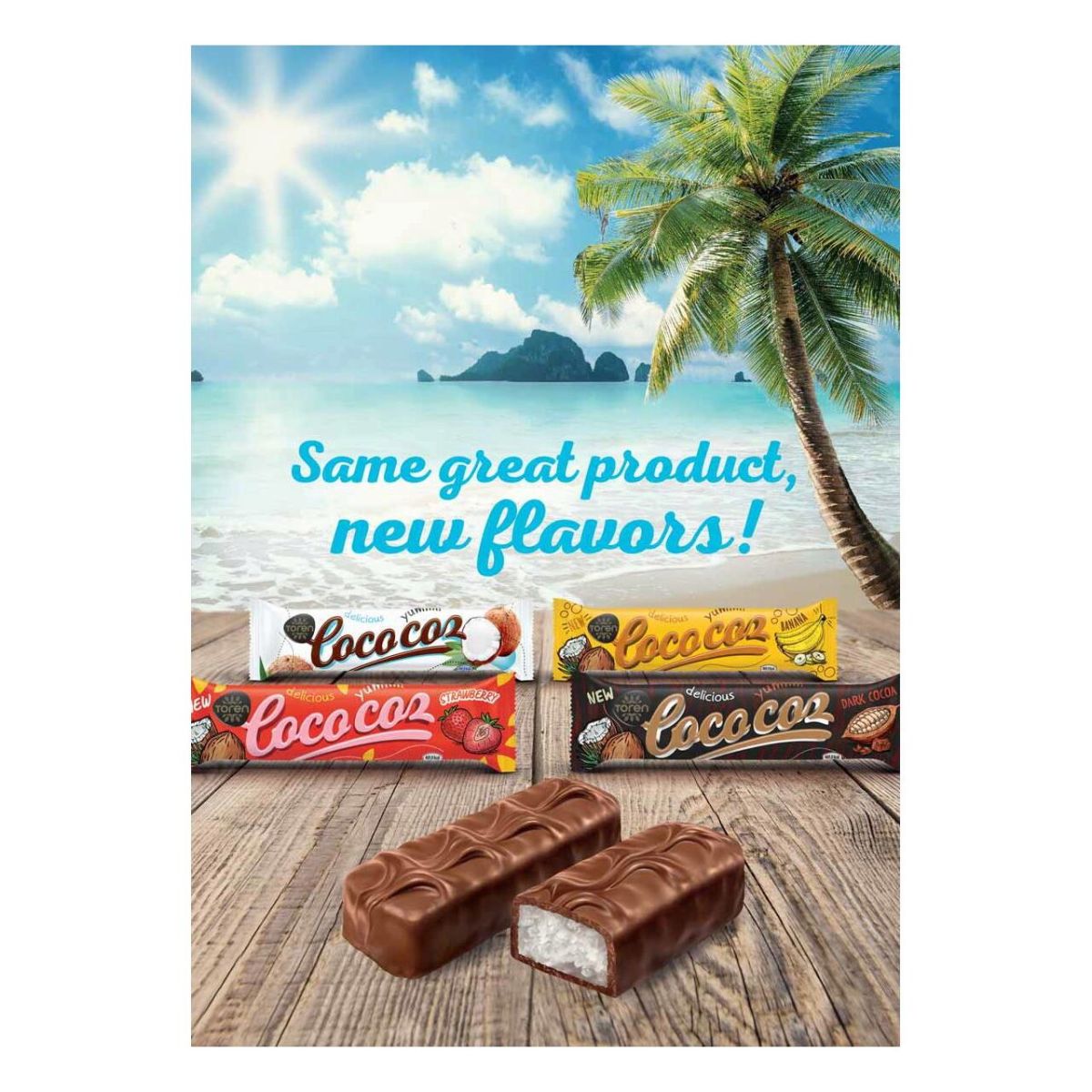 Baton de ciocolata cu fulgi de cocos si capsuni Cococoz, 24 g Engros