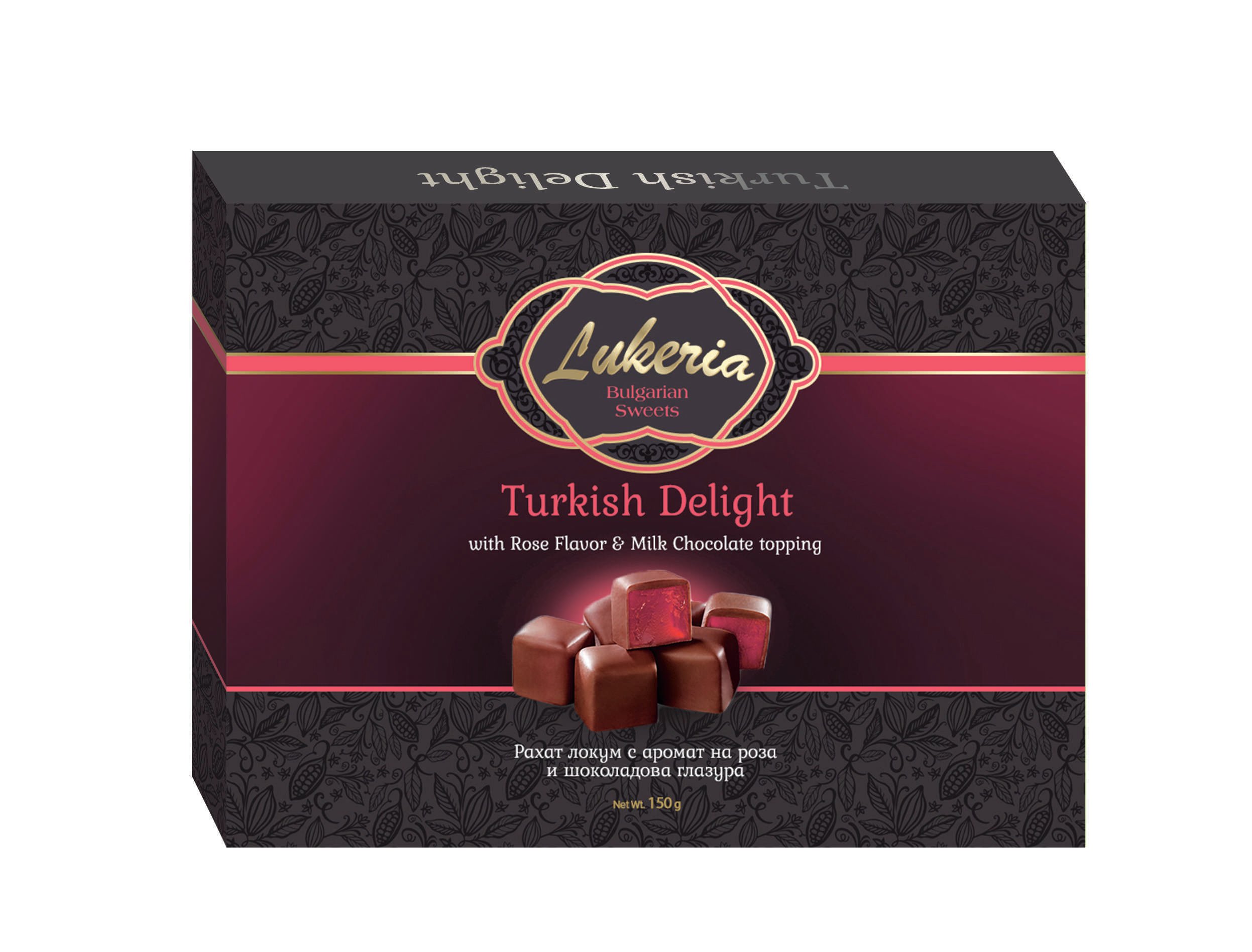 Rahat turcesc en-gros premium cu aromă de trandafir în glazură de ciocolată - LUKERIA - 150 g
