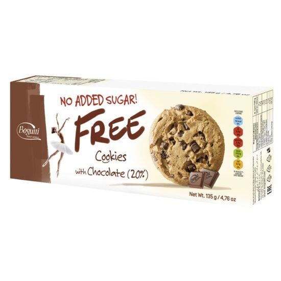 Biscuiti cu ciocolata 20% fara zahar adaugat Free Cookies American Bogutti 135 g, 12 bucati Engros