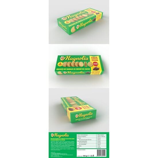 Biscuiti cu cacao si crema vanilie, fara zahar, Magnolia, 130 g Engros