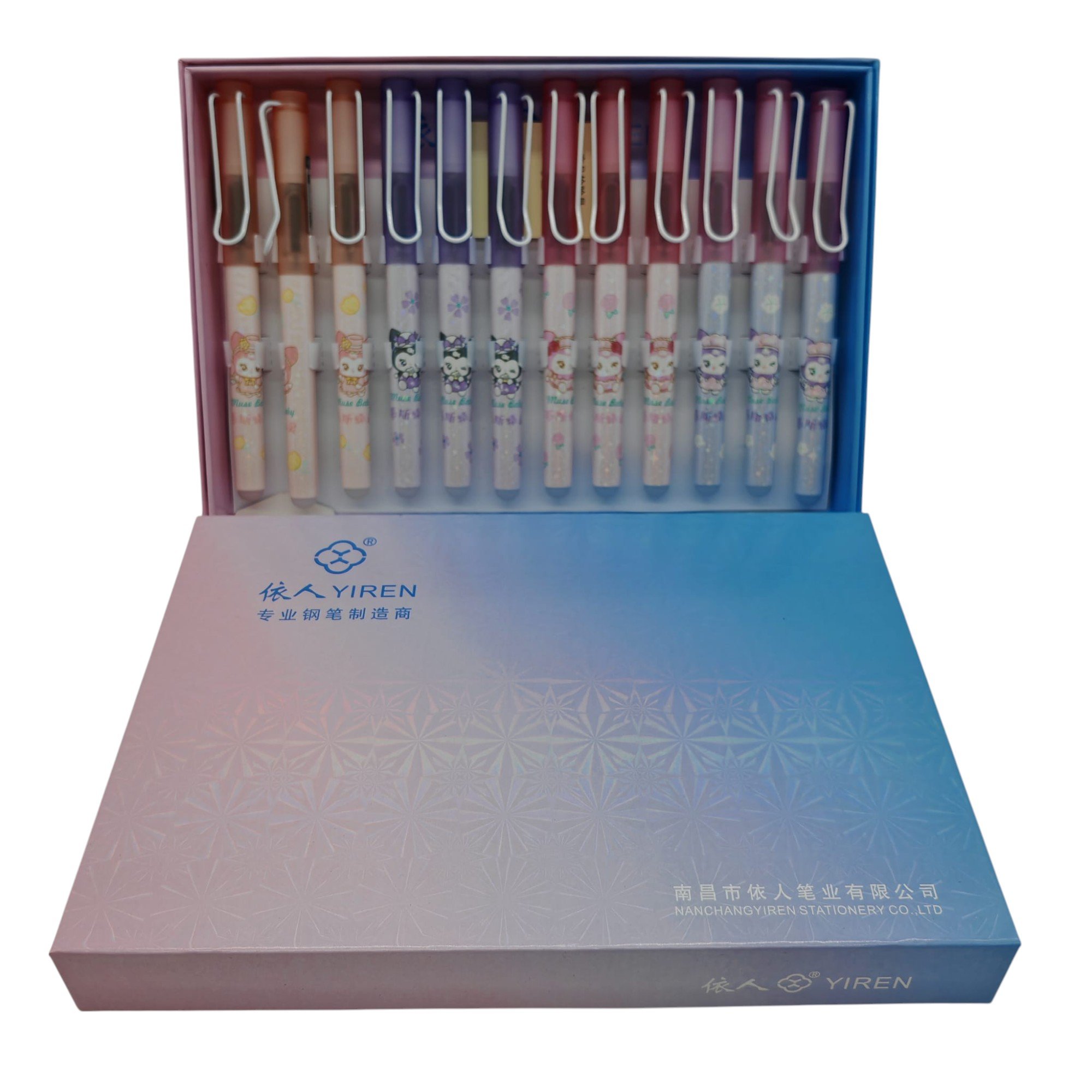 Set 12 Stilouri cu Cerneală Termică și Radieră Yiren – Cod 7065/7076 – Imprimeu Sanrio – Vânzare Engros