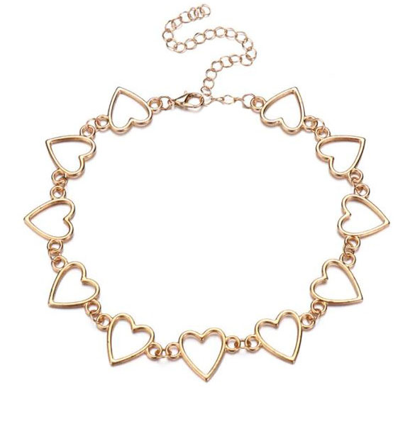 Choker cu Inimi, Korean heart, Femei, Stainless-steel, Auriu Engros