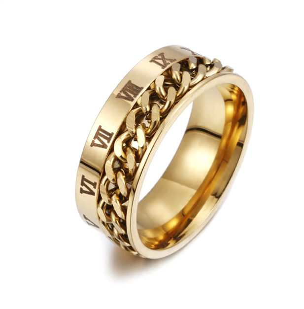 Inel pentru Barbati, Lant si cifre romane, Auriu - Marime 7 (59mm) Engros
