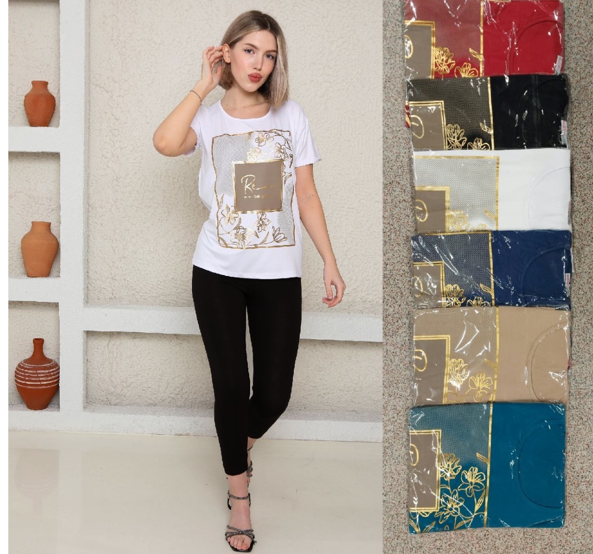 Bluza cu maneca 3/4 cu imprimeu si pietricele fata, en-gross