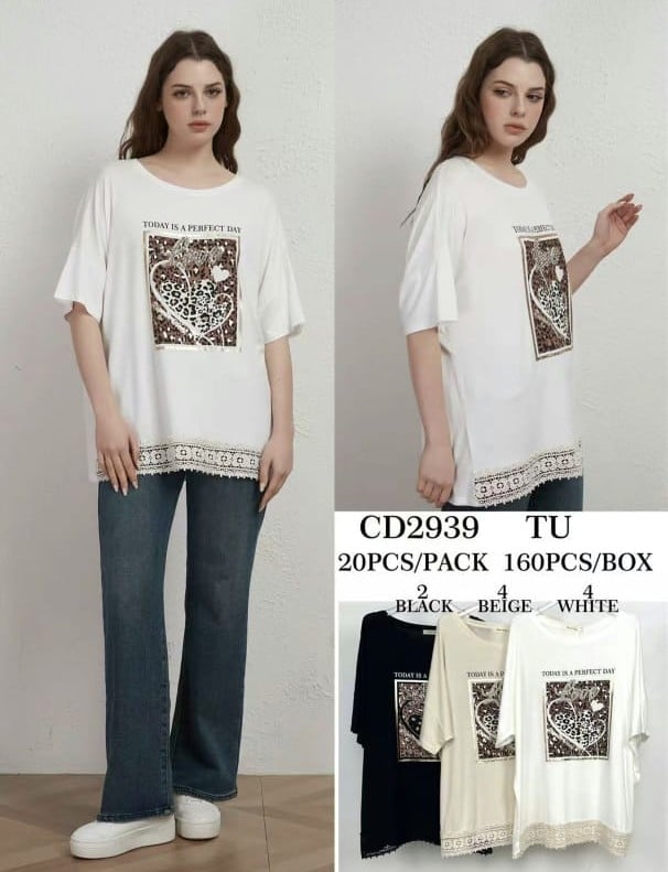 Bluza cu imprimeu in fata si terminatie dntela, en-gross