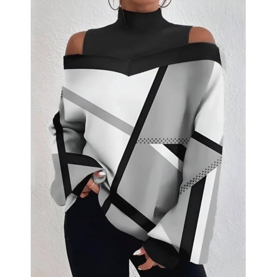 Search Results: Bluză Dama, Engros, cu mânecă lungă pentru femei, cu gât țesut, cu modele fără umăr