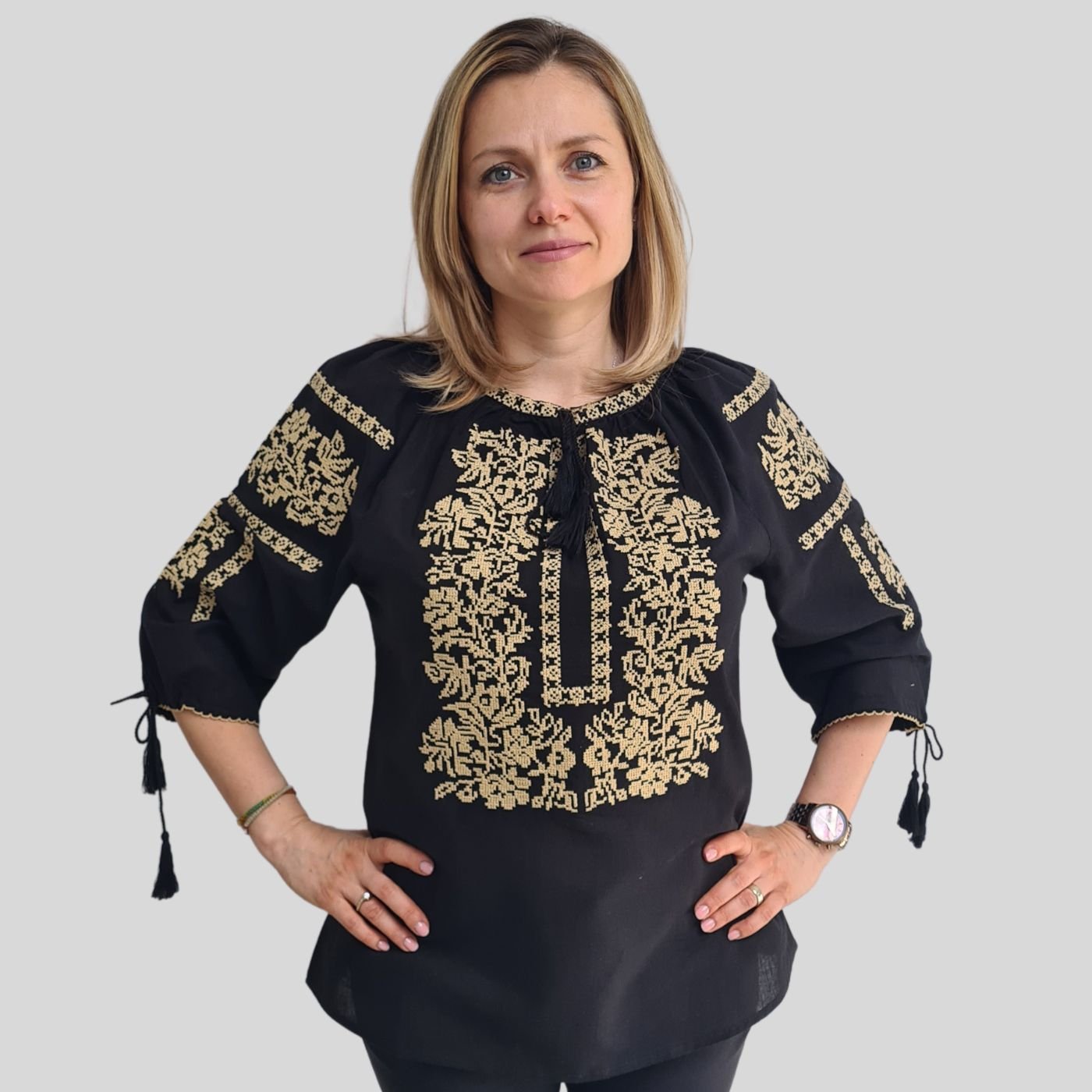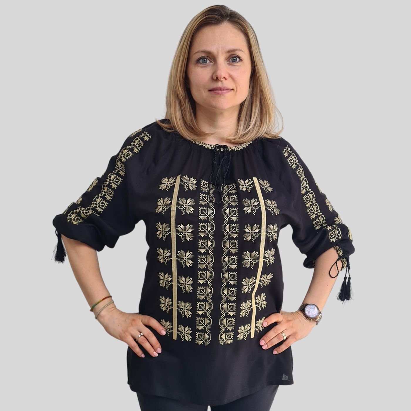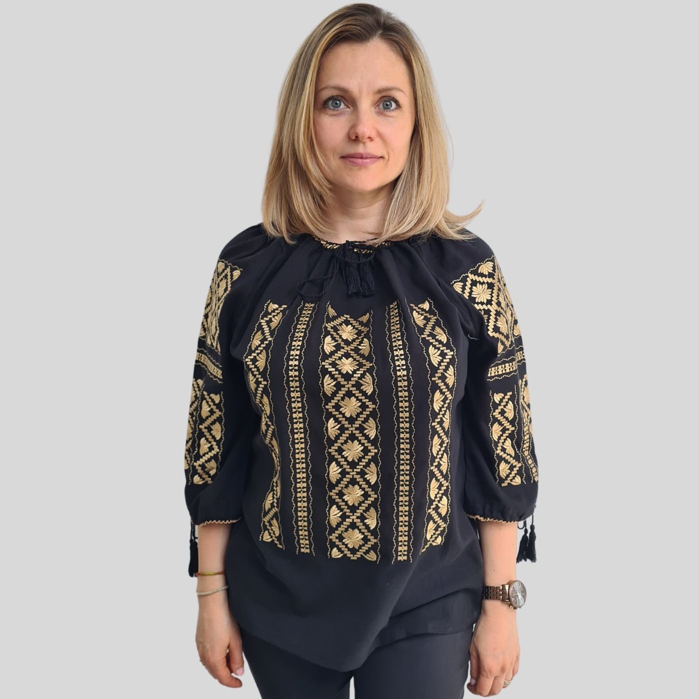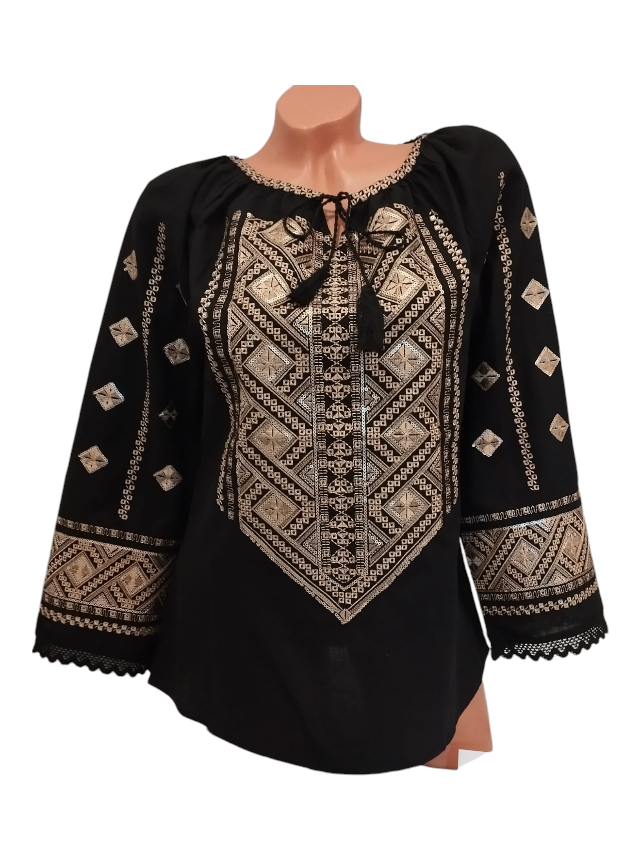 Ie Engros pentru femei, cu maneca lunga, model brodat, fir metalic auriu