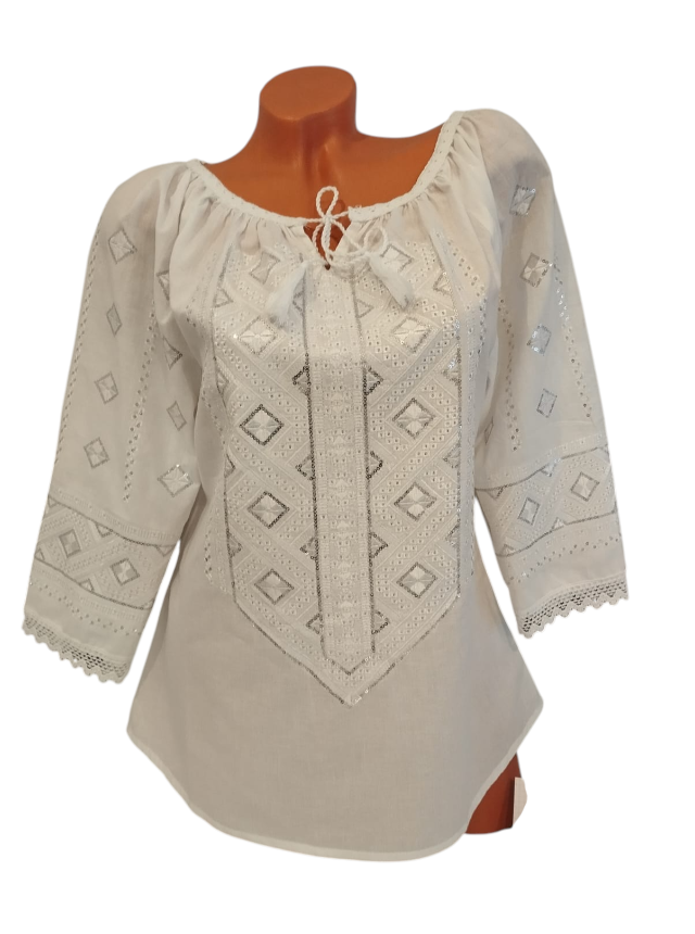 Ie Engros pentru femei, cu maneca lunga, model brodat, fir metalic argintiu