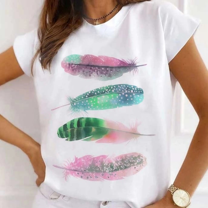 Search Results: Tricou Dama Alb Colorful Feathers Engros