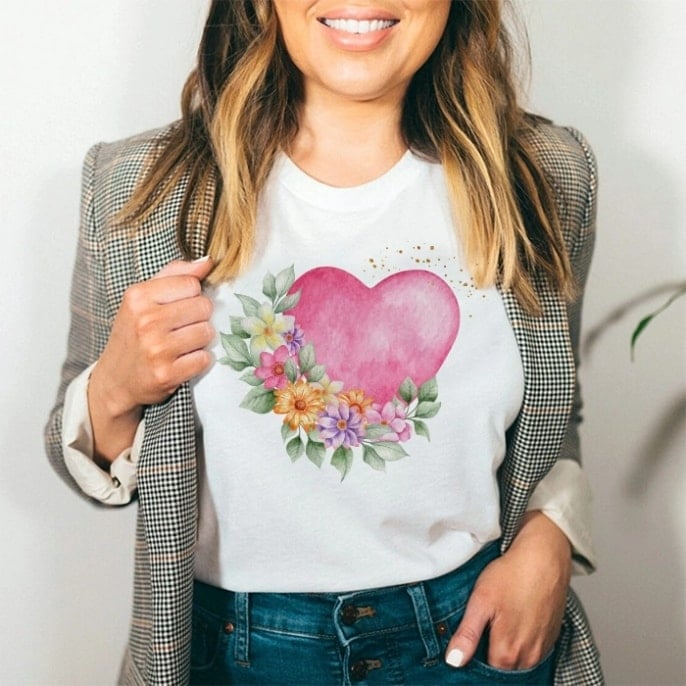 Search Results: Tricou Dama Alb Pink Heart Flowers Engros