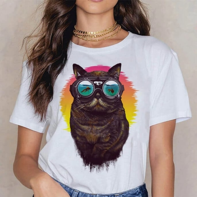 Tricou Dama Alb Underwater Cat Engros