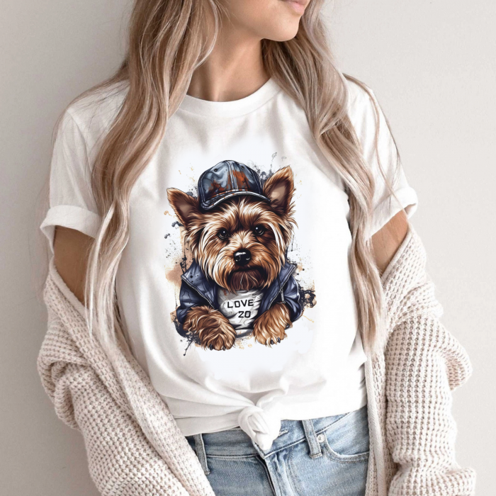 Tricou Dama Alb Cute Yorkie Dog Engros