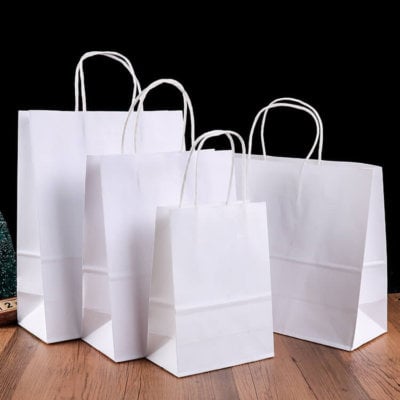SACOSE DIN HARTIE ALBE CU MANER RASUCIT31x17x39 cm (100 BUC/SET)