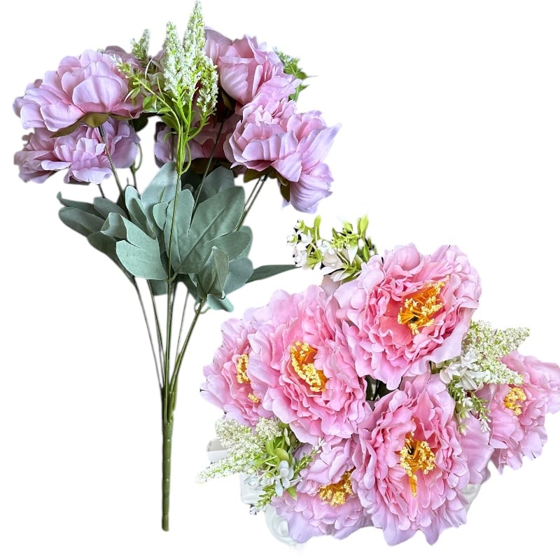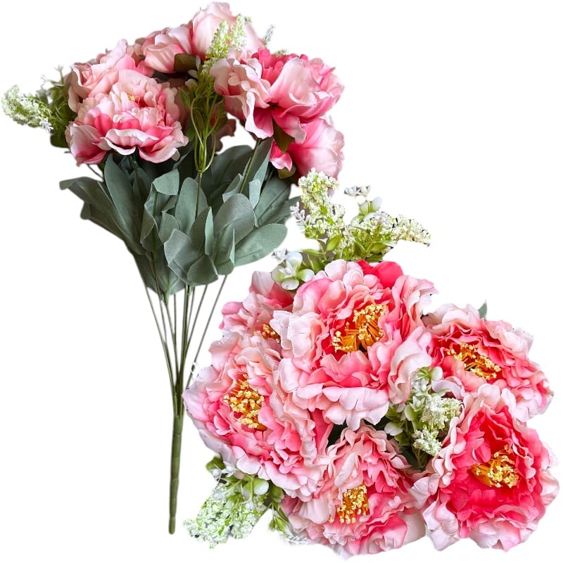 Buchet de flori artificiale – Bujor , 50 cm, 9 fire, 6 cupe, en-gros