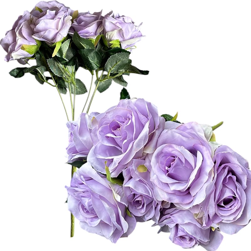 Buchet de flori artificiale Trandafiri din catifea, 7 fire, 45 cm, diametru floare 10 cm – en-gros