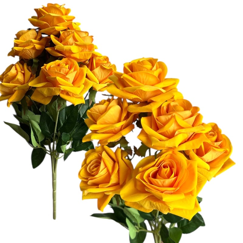 Buchet de flori artificiale Trandafiri din catifea, 7 fire, 45 cm, diametru floare 10 cm – en-gros