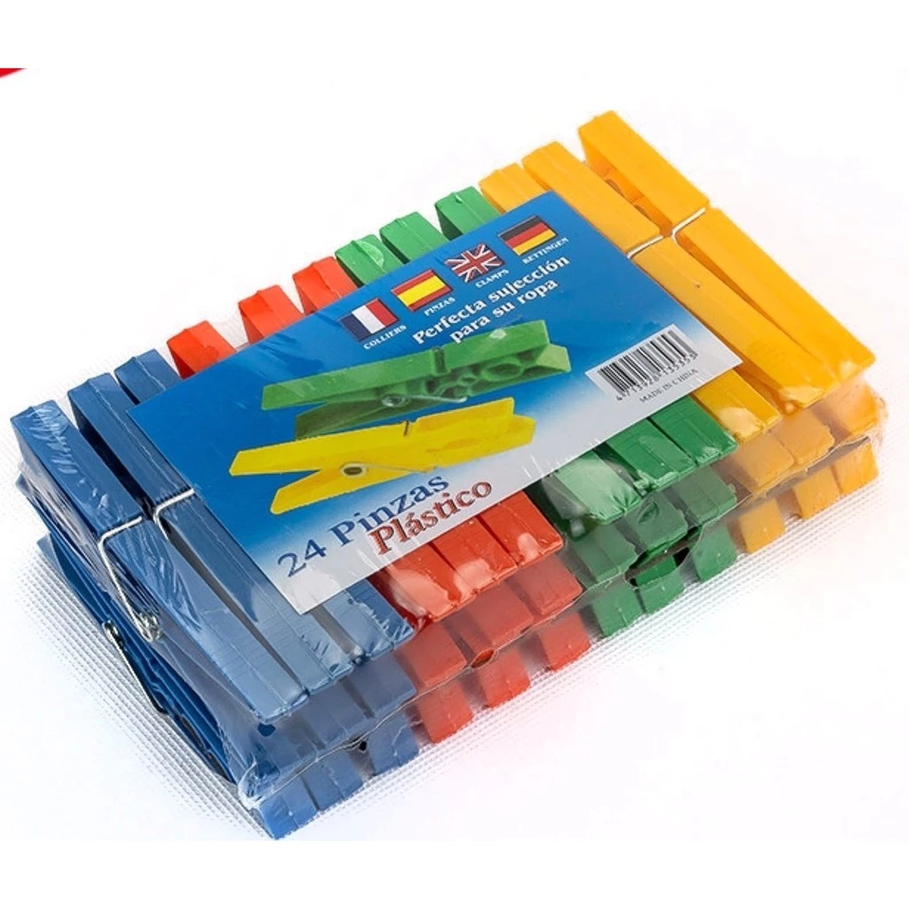 Clești - Carlige de rufe en-gros, plastic, multicolor, 24 buc/set