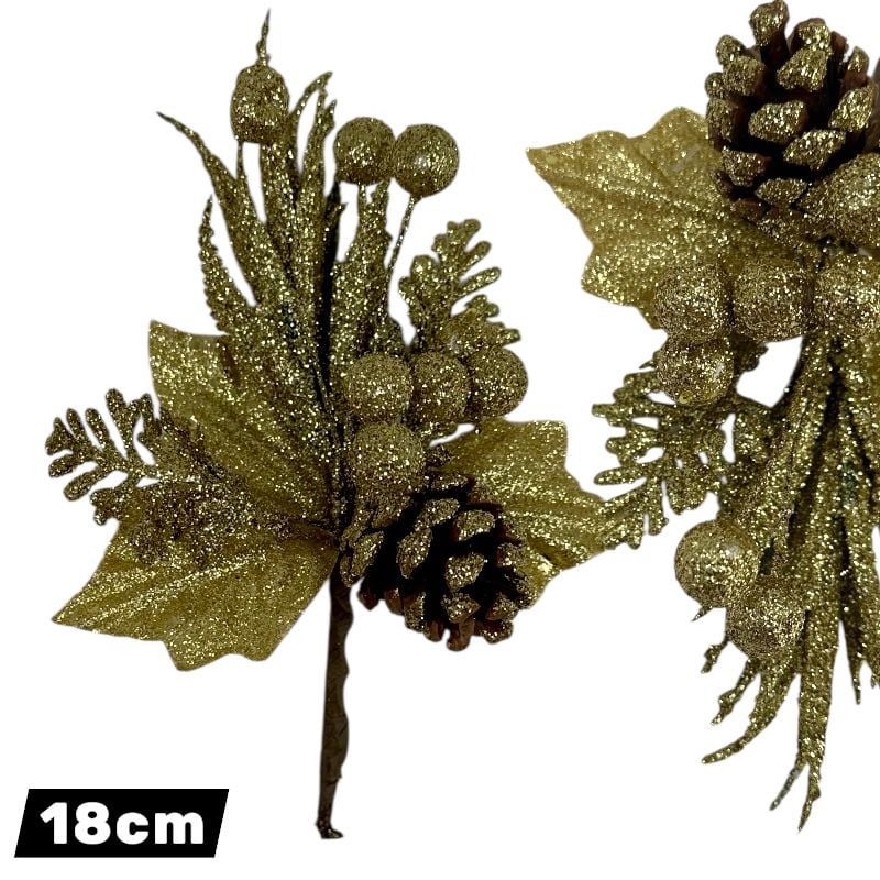 Crenguță de Crăciun cu sclipici 18 cm cu conuri, auriu– en-gros