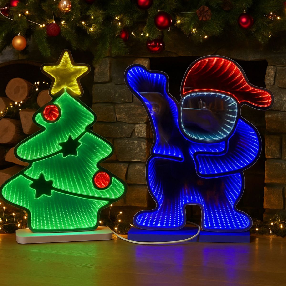 Decorațiune de Crăciun 30x23cm, Brad Oglindă 3D cu Lumină LED Multicoloră, Alimentare USB Engros