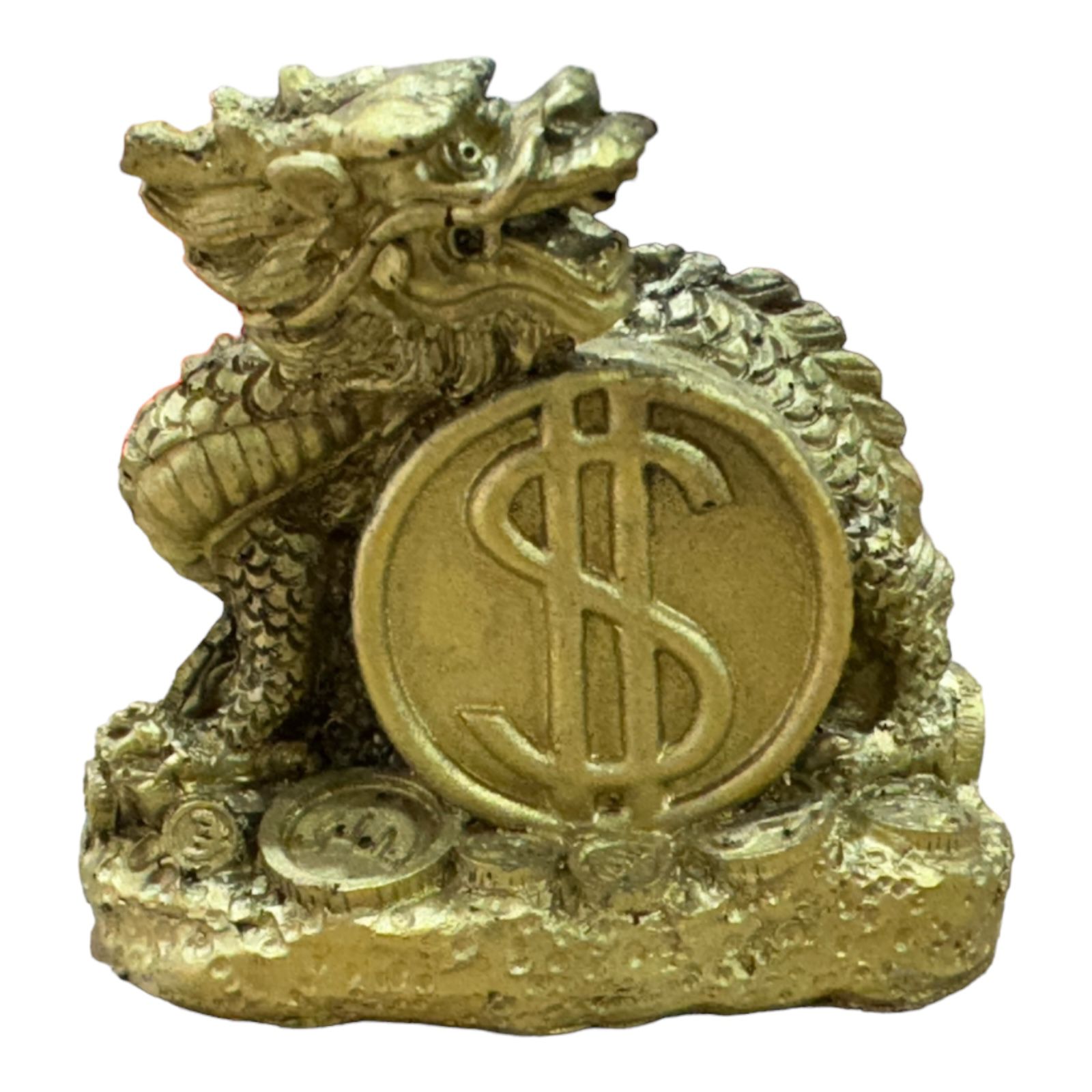 Decoratiune Feng Shui din rasina, Dragon cu moneda, 8.5×8×5.5cm, en-gros