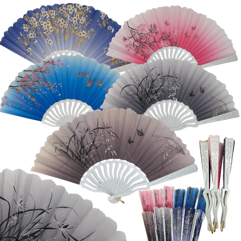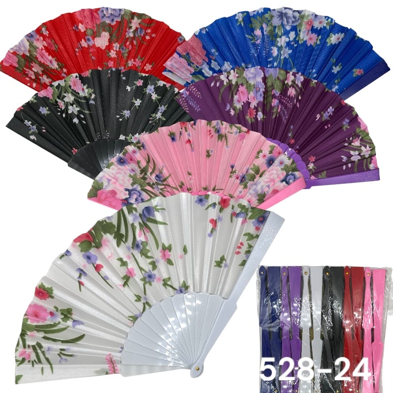 Evantaie cu motive florale culori mixte– Set en-gros de 12buc
