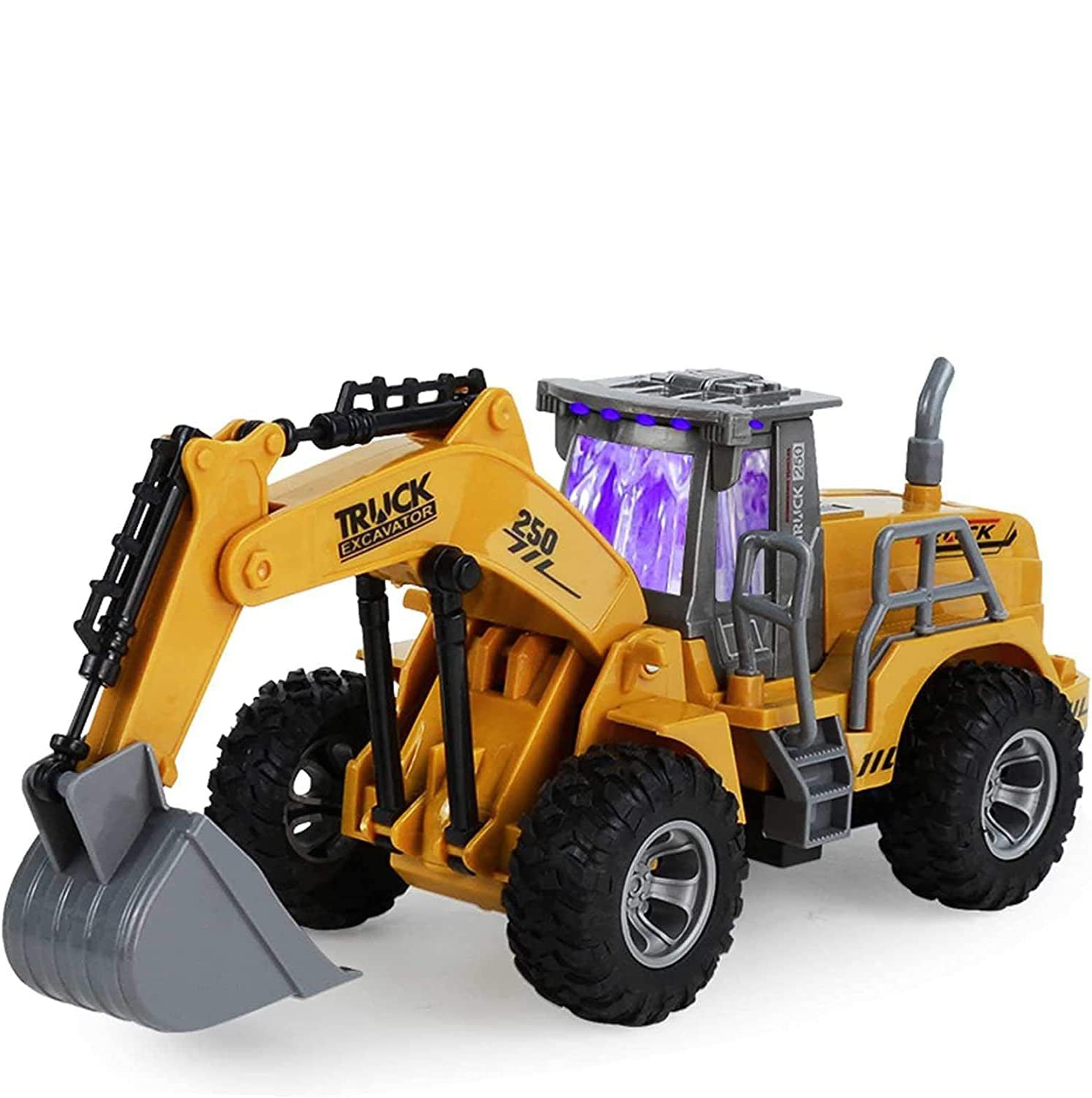 Excavator de jucarie Telecomanda RC Engros cu incarcator frontal cupa, Utilaj de construtii, Rotatie la 360°, cu lumina si sunete, scara 1:30, Pitikot®