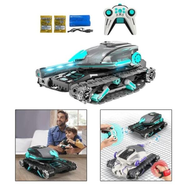 Masina de jucarie cu telecomanda, tip tanc, care trage cu mingi de apa, ENGROS