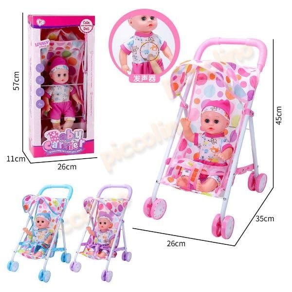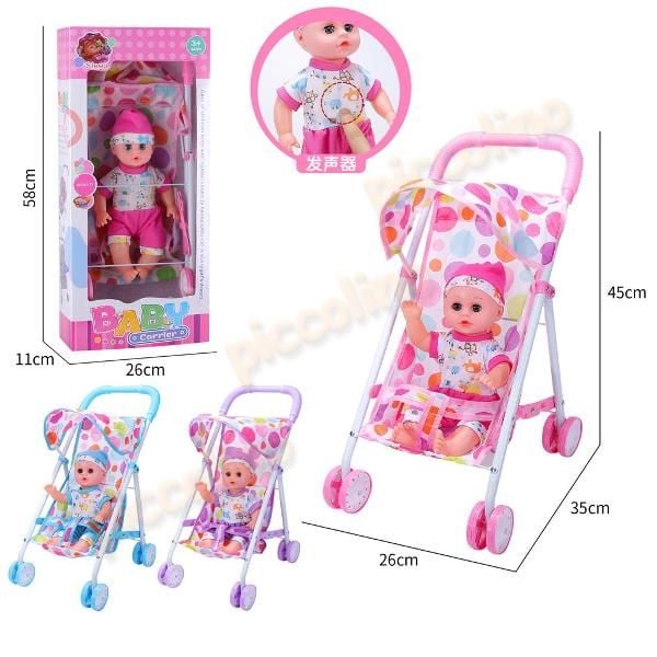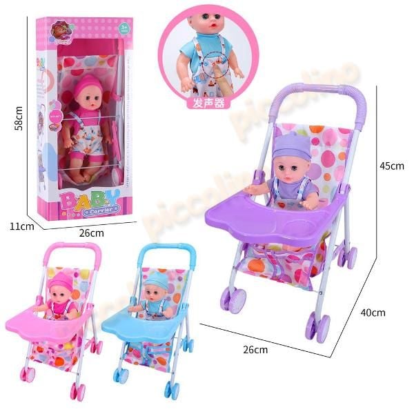 Carucior sport-masuta, bare metal cu papusa baiat cu sunete 742 Engros