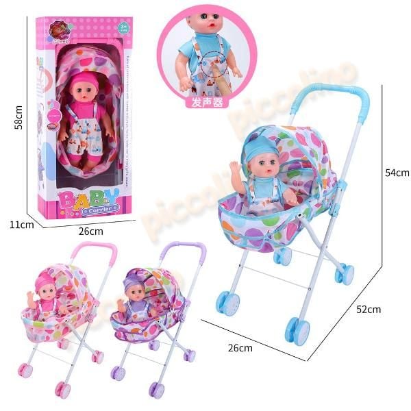 Carucior papusa bare metalice cu bebelus baiat cu sunete Engros