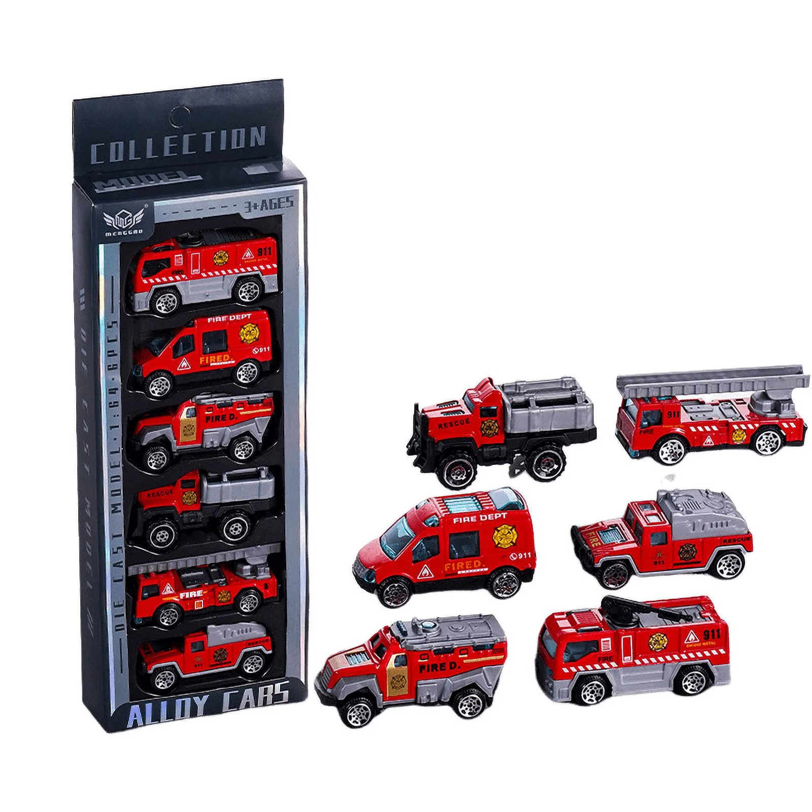 Set 6 Masinute Metalice Tip Pompieri, Culoare Rosie, Pull-Back, Jucarii pentru Copii 3+ Engros