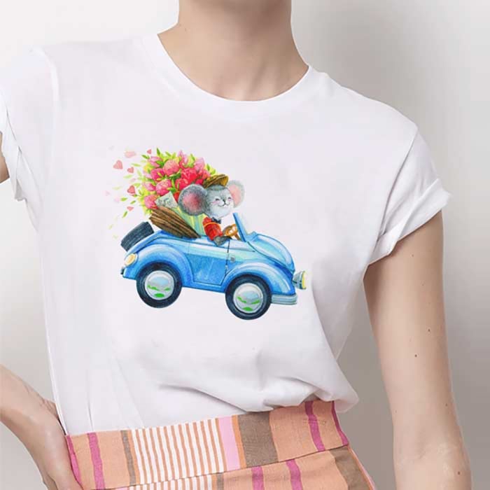 Tricou Dama Alb Flower Delivery Engros