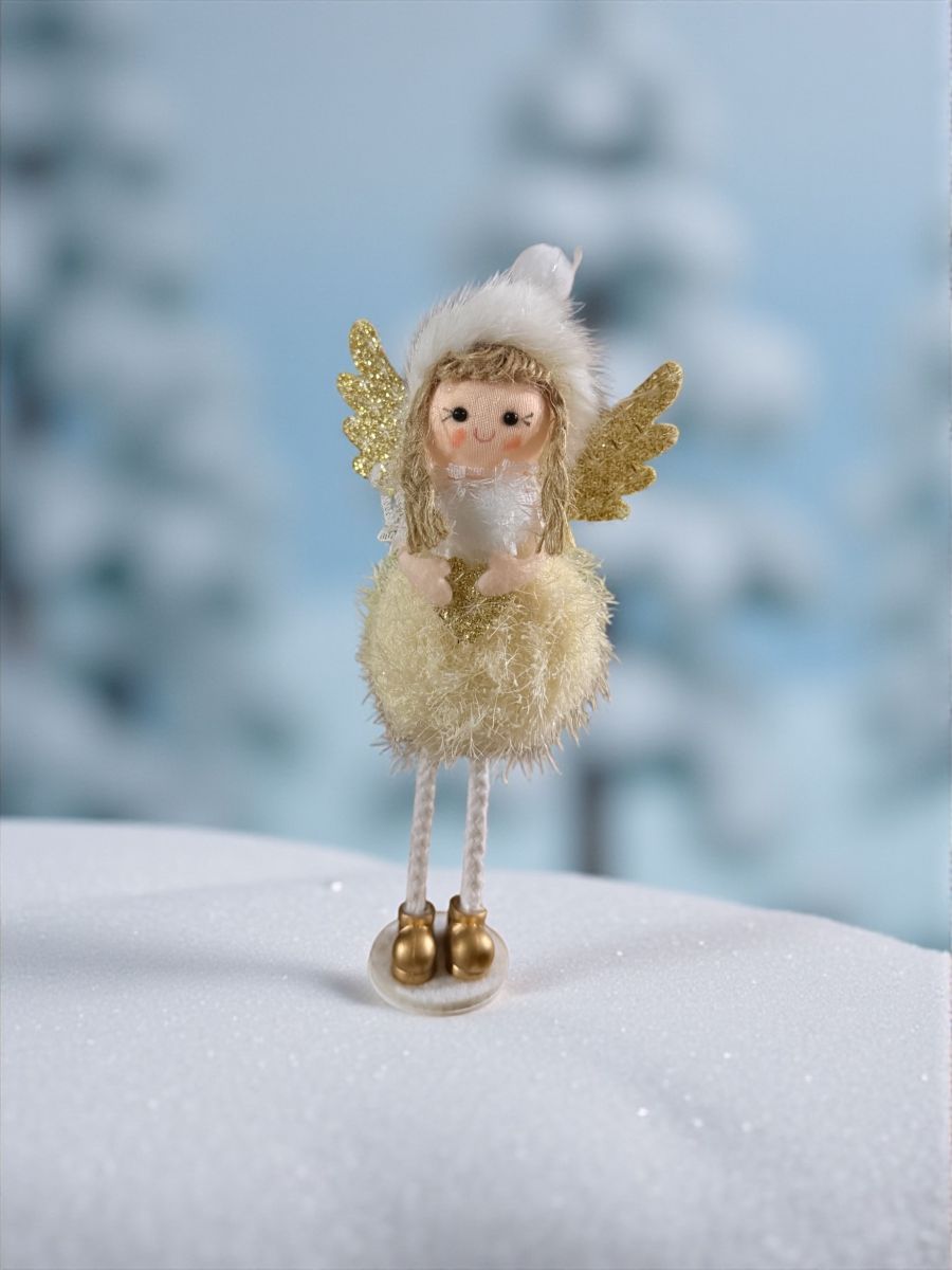 Îngeraș decorativ textil – 20 cm – auriu & alb,En-gros