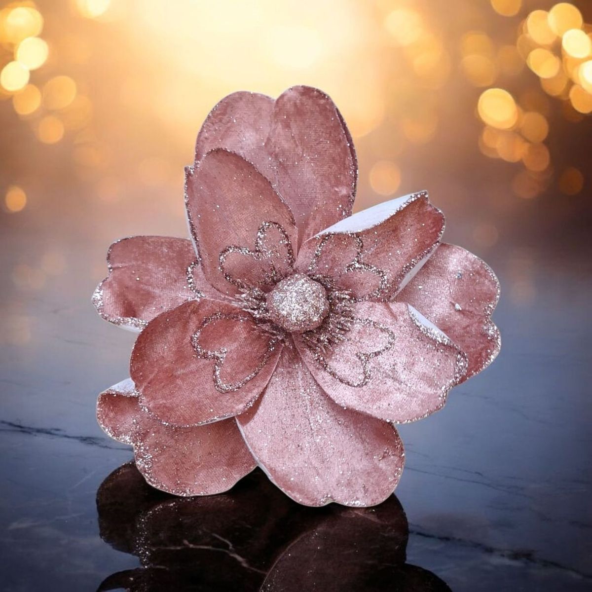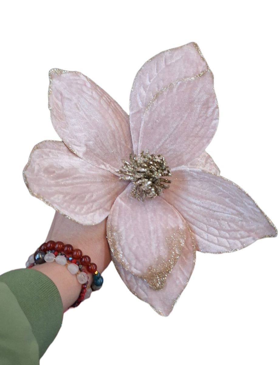 Set 10 flori Crăciuniță engros 25 cm catifea ROZ PAL
