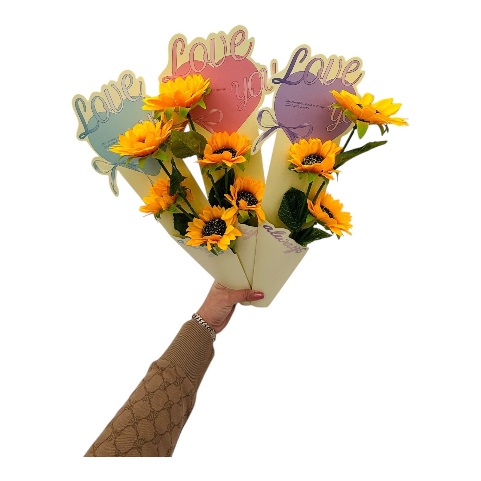 Pachet Avantajos!!! 20 bucati Aranjament Deosebit cu Floarea Soarelui, 3 flori SI frunze pe un fir, 44cm, Engros